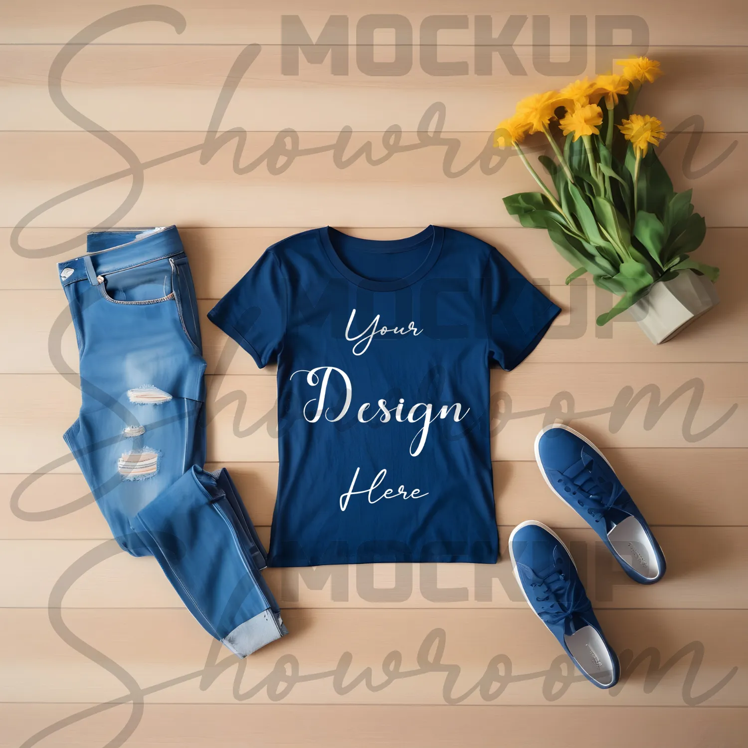 Dark Blue Flat Lay T-Shirt Mockup-3 | For Etsy, Shopify and POD Sellers