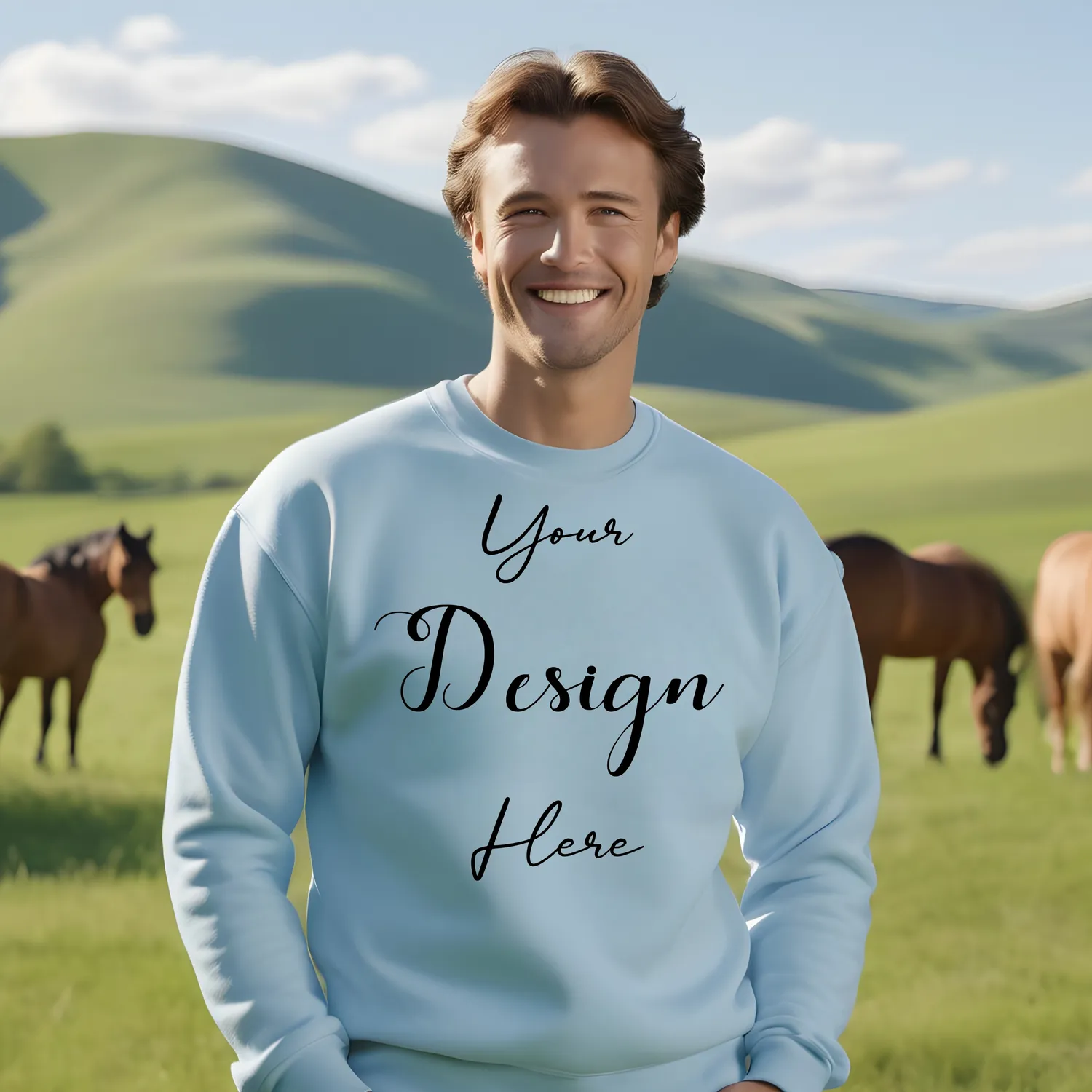 Mens Light Blue Sweatshirt Mockup-2 Front View | For Etsy, Shopify and POD Sellers