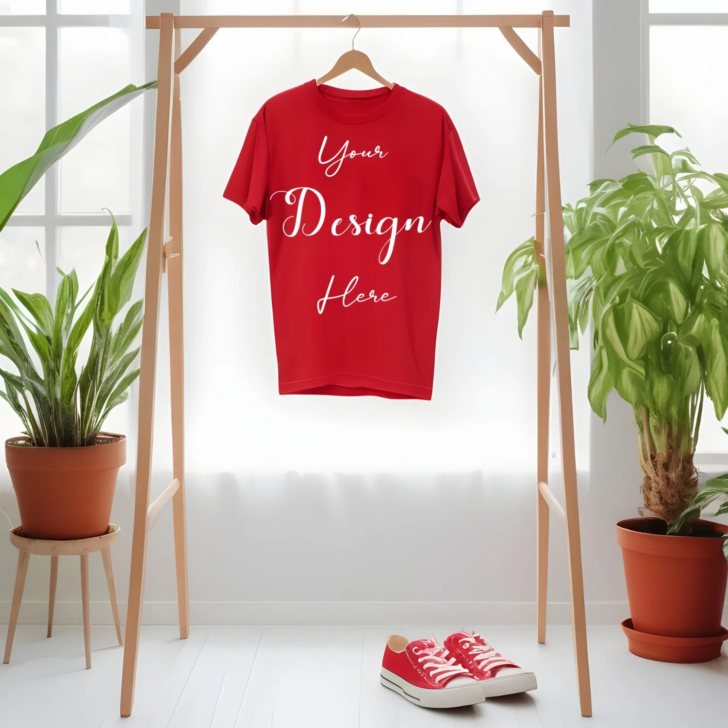Red Hanging T-Shirt Mockup-1 Front View | For Etsy, Shopify and POD Sellers
