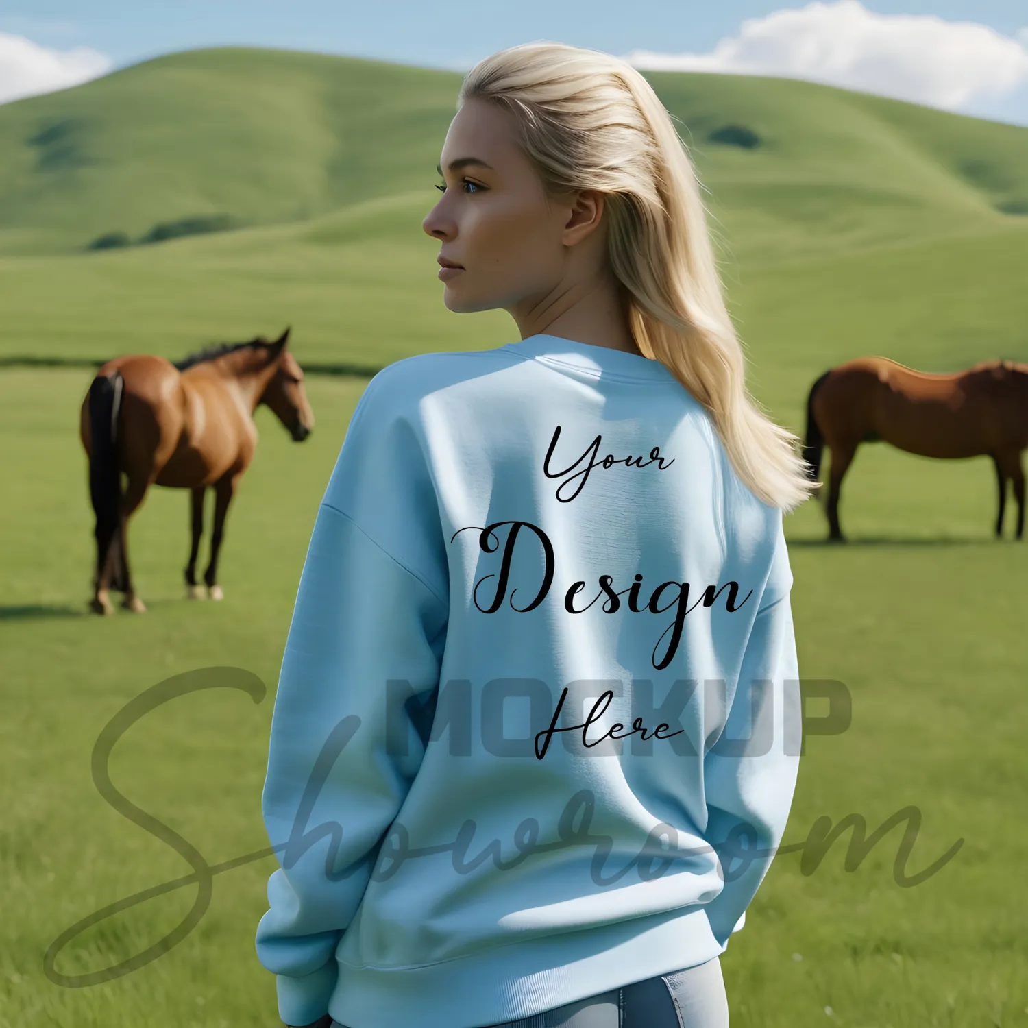 Womens Light Blue Sweatshirt Mockup-1 Back View | For Etsy, Shopify and POD Sellers