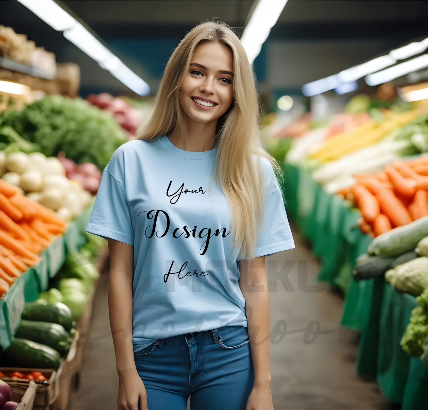Women’s Light Blue T-Shirt Mockup-2 Front View | For Etsy, Shopify and POD Sellers