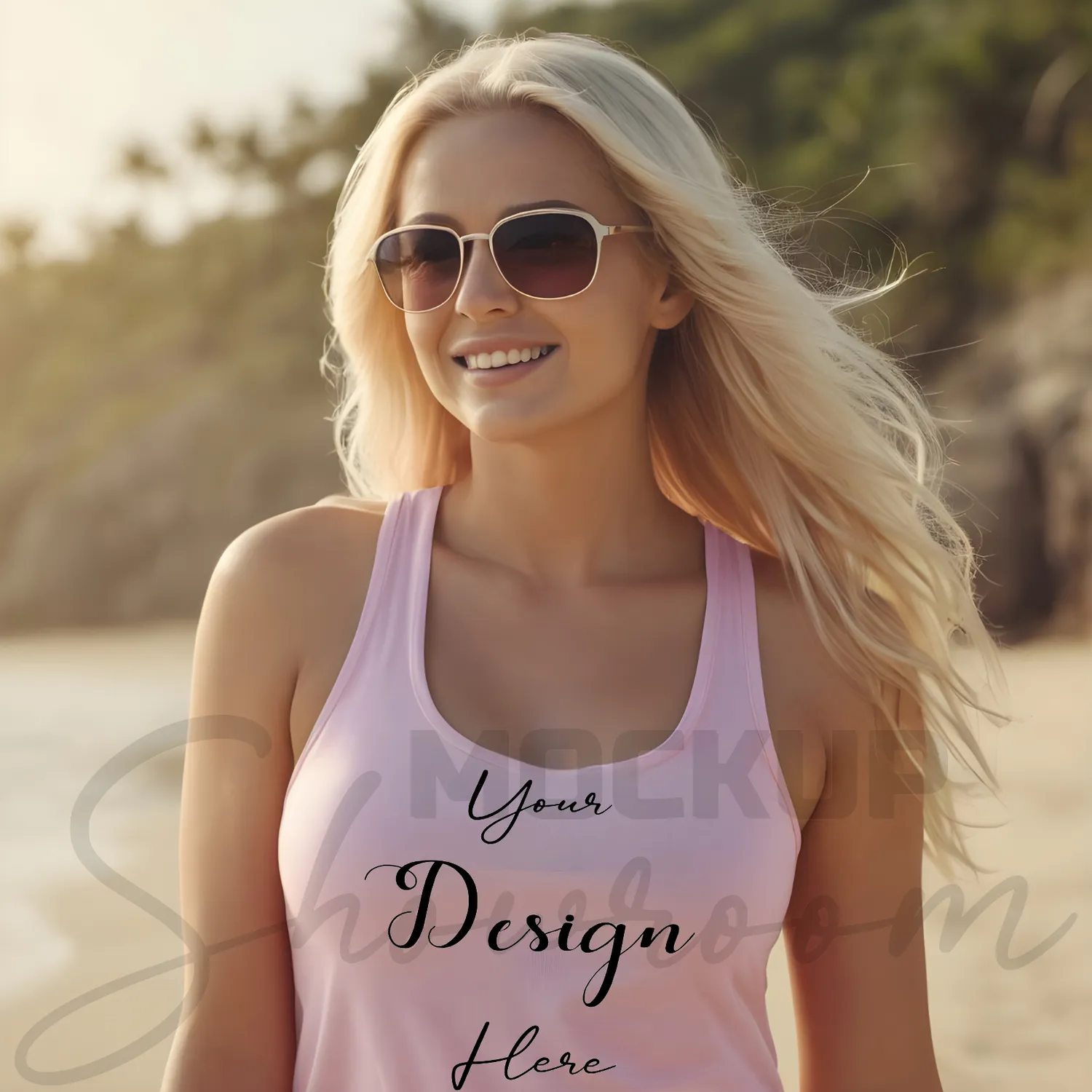 Womens Light Pink Tank Top Mockup-2 Front View | For Etsy, Shopify and POD Sellers