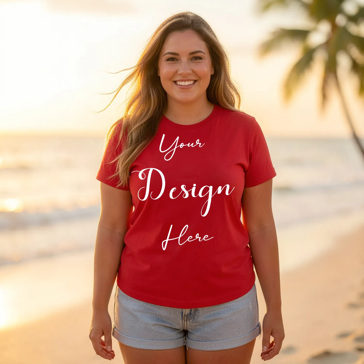 Womens Red Plus-size T-shirt Mockup-5 Front View | For Etsy, Shopify and POD Sellers