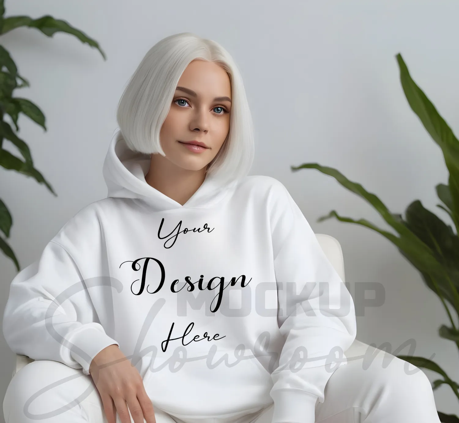 Women’s White Hoodie Mockup-17 Front View | For Etsy, Shopify and POD Sellers