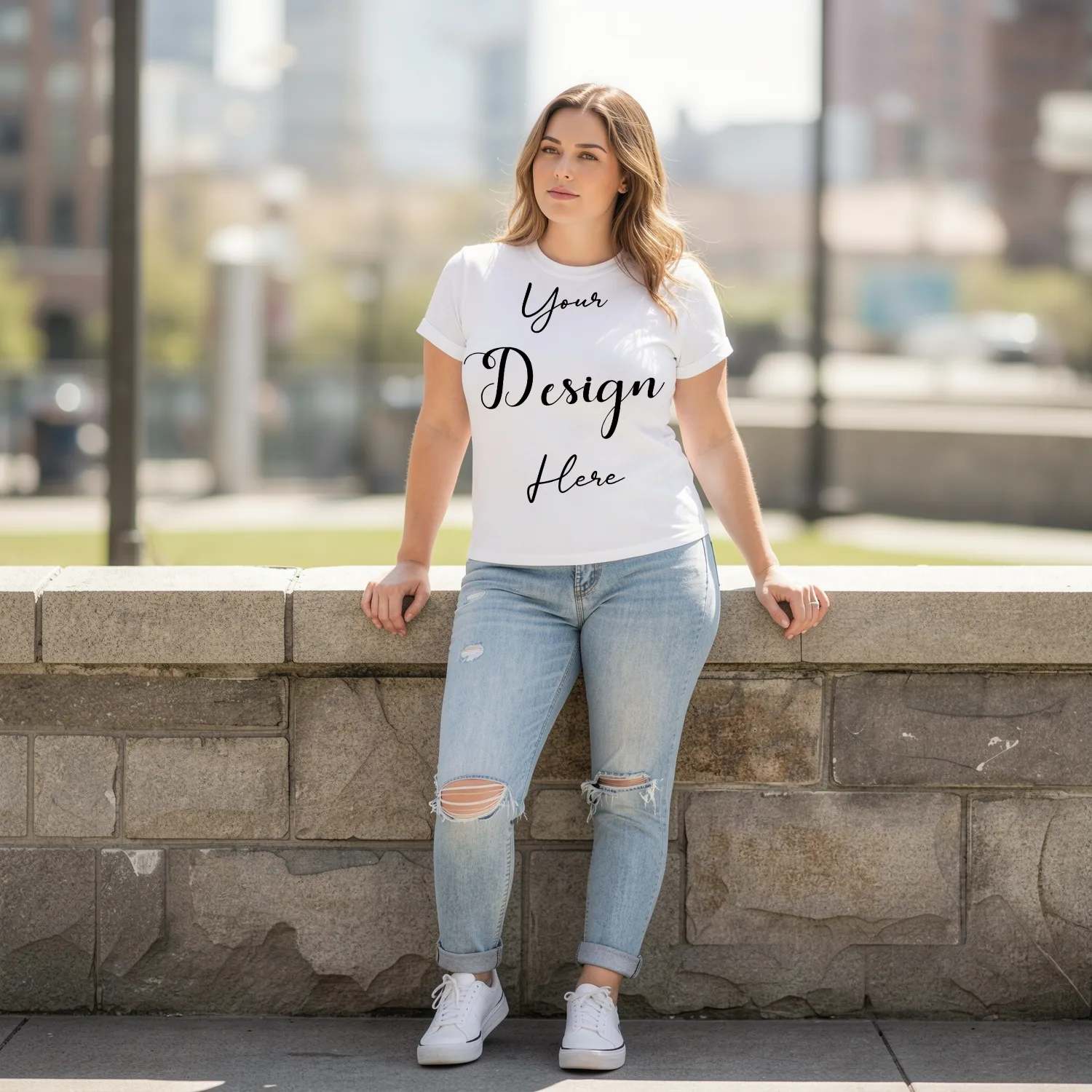 Womens White Plus-size T-shirt Mockup-23 Front View | For Etsy, Shopify and POD Sellers