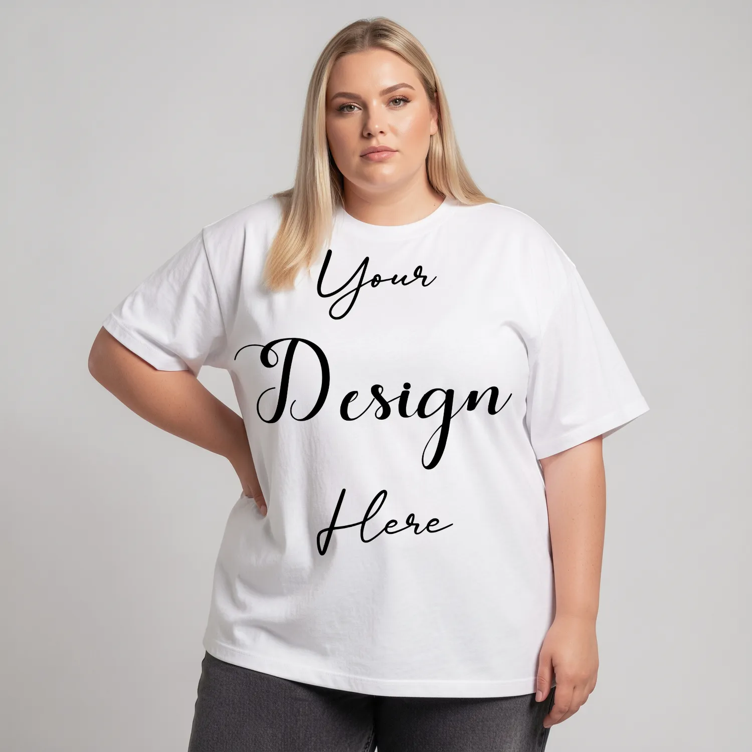 Womens White Plus-size T-shirt Mockup-26 Front View | For Etsy, Shopify and POD Sellers