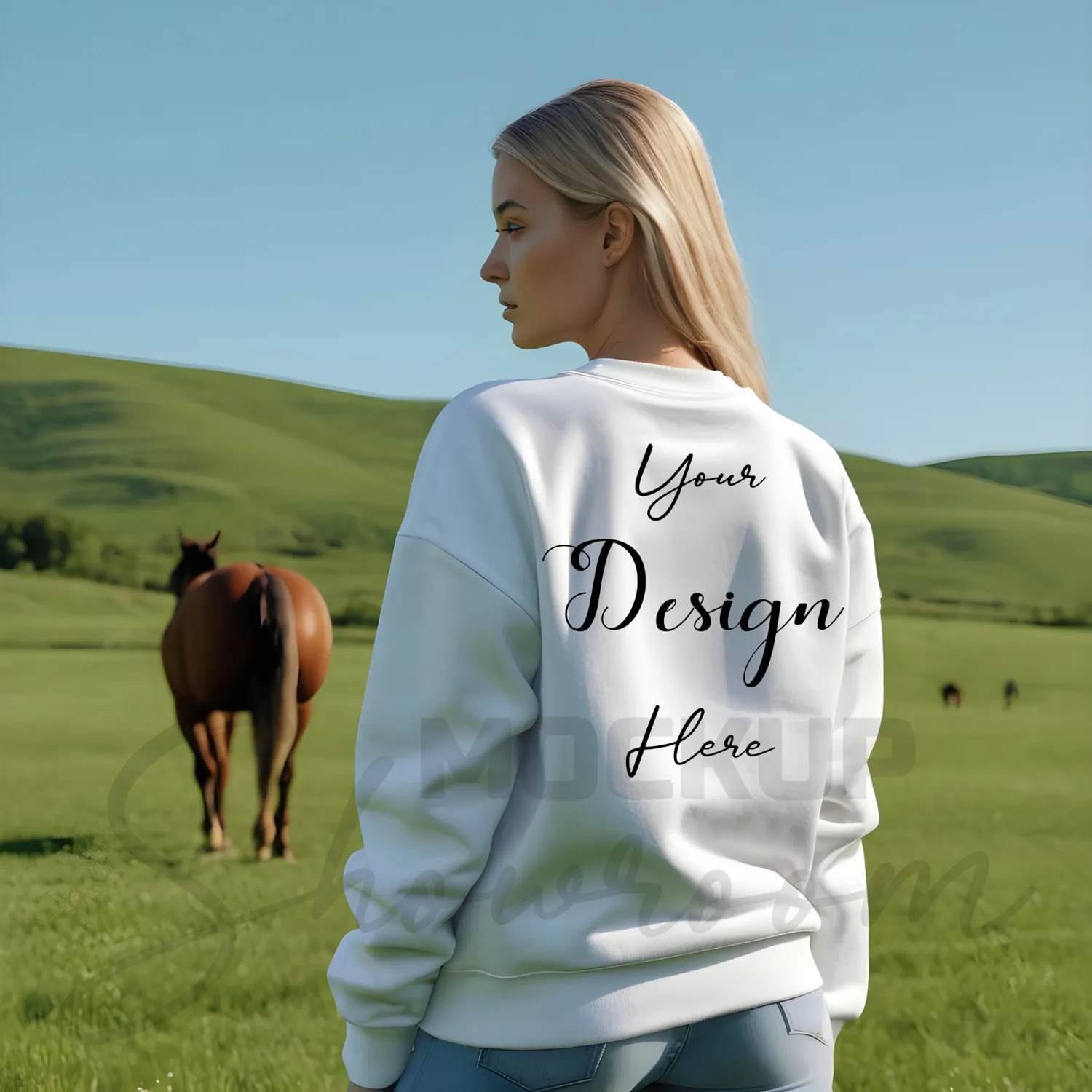 Womens White Sweatshirt Mockup-12 Back View | For Etsy, Shopify and POD Sellers